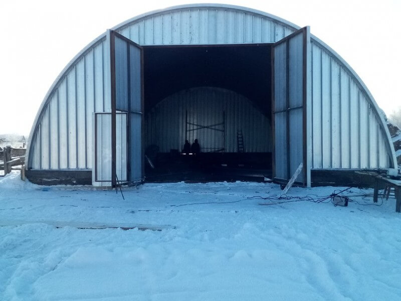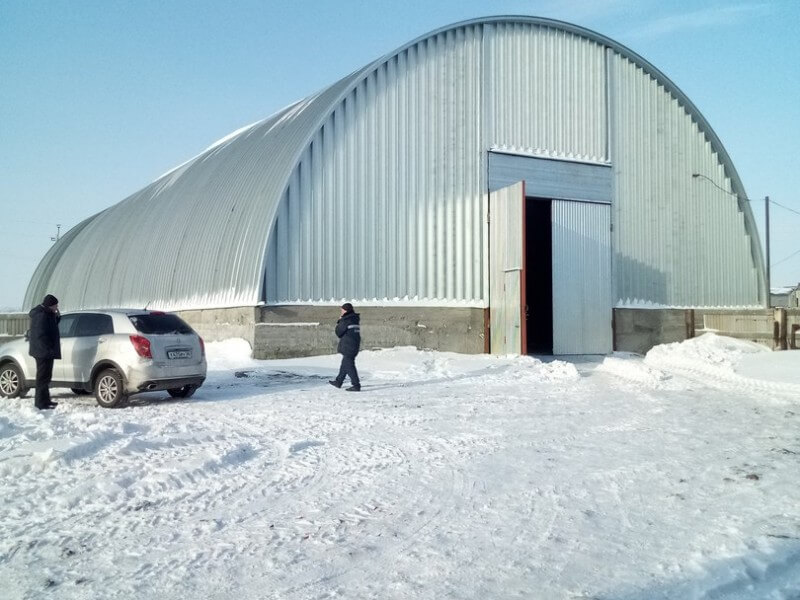 Строительство бескаркасного арочного ангара 12х30 на готовом фундаменте заказчика в Железногорске